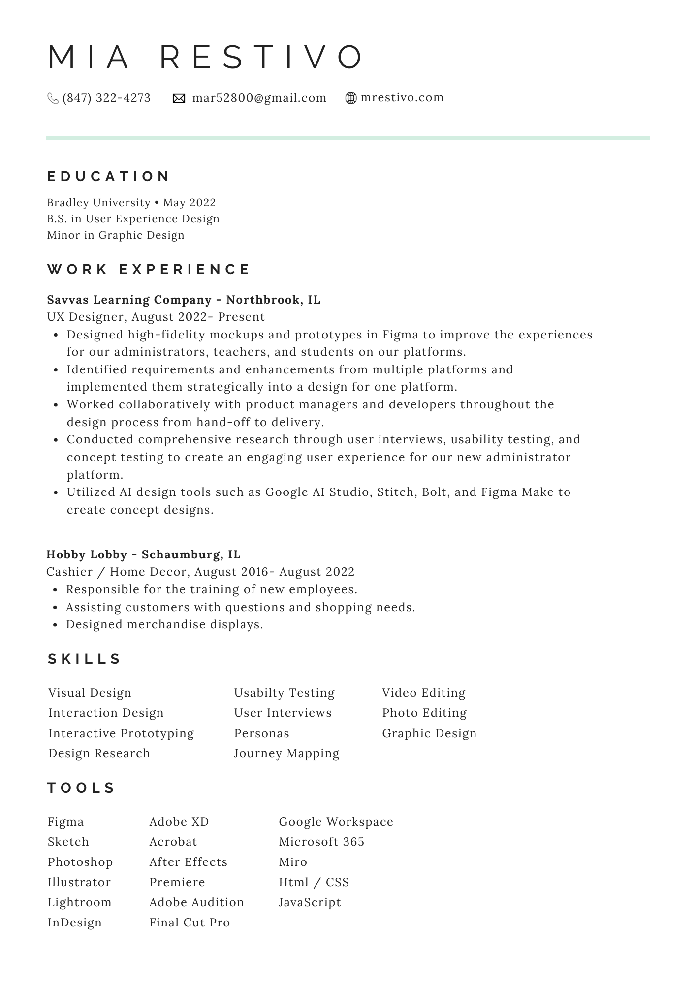 Hi! I'm Mia Restivo and I am from Elk Grove Village, IL. I graduated from Bradley University Magna Cum Laude with a Bachelor of Science in User Experience Design and a minor in graphic design. I'm an Alumni of Pi Beta Phi sorority, IL theta chapter. For as long as I can remember, I’ve always been interested in going into a field related to design. I'm excited to see what my future in design has in store for me!